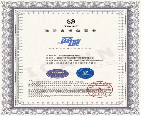 全网络唯一 “中国+绿色粮食”组合域名!